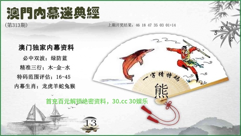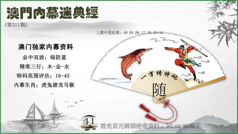 309期:复式连肖【龙马狗蛇虎牛】3肖